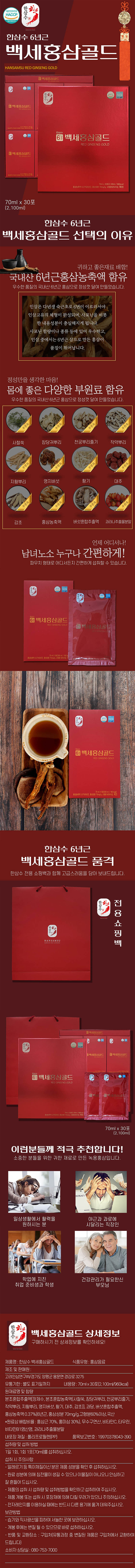 한삼수 백세홍삼골드 70ml 30포 주문 및 문의