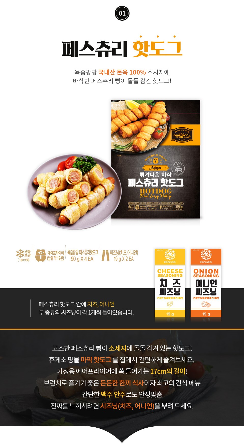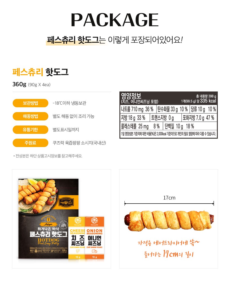 쿠즈락앳홈 페스츄리 핫도그 90g 4개입 x 4팩 주문 및 문의