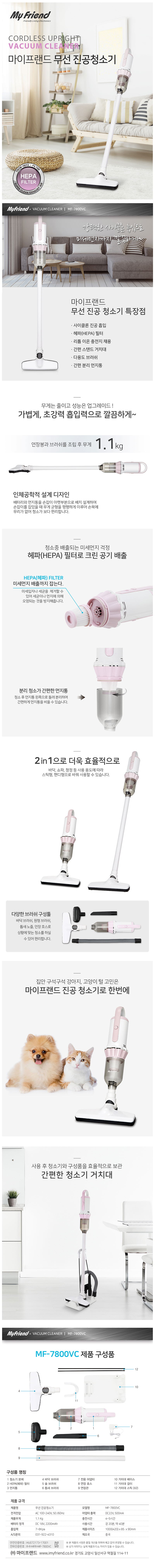 마이프랜드 무선 진공청소기 MF-7800VC 주문 및 문의