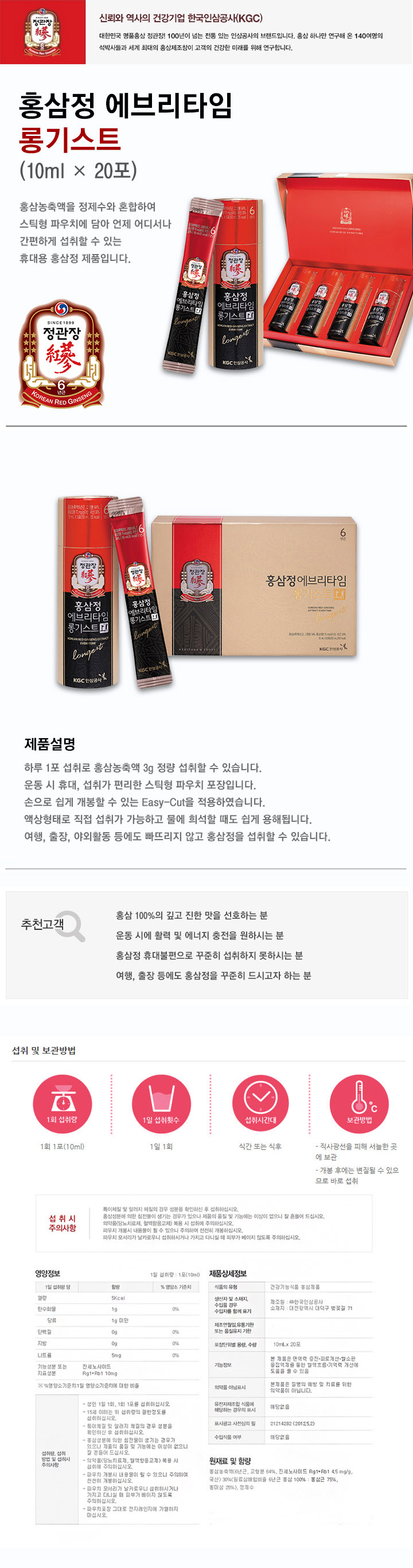 정관장 홍삼정 에브리타임 롱기스트 10ml 20포 제품을