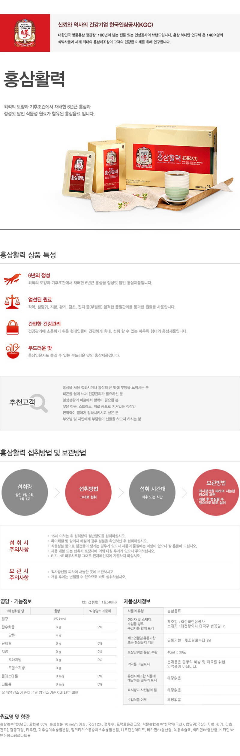 정관장 홍삼활력 40ml 30포 주문 및 문의