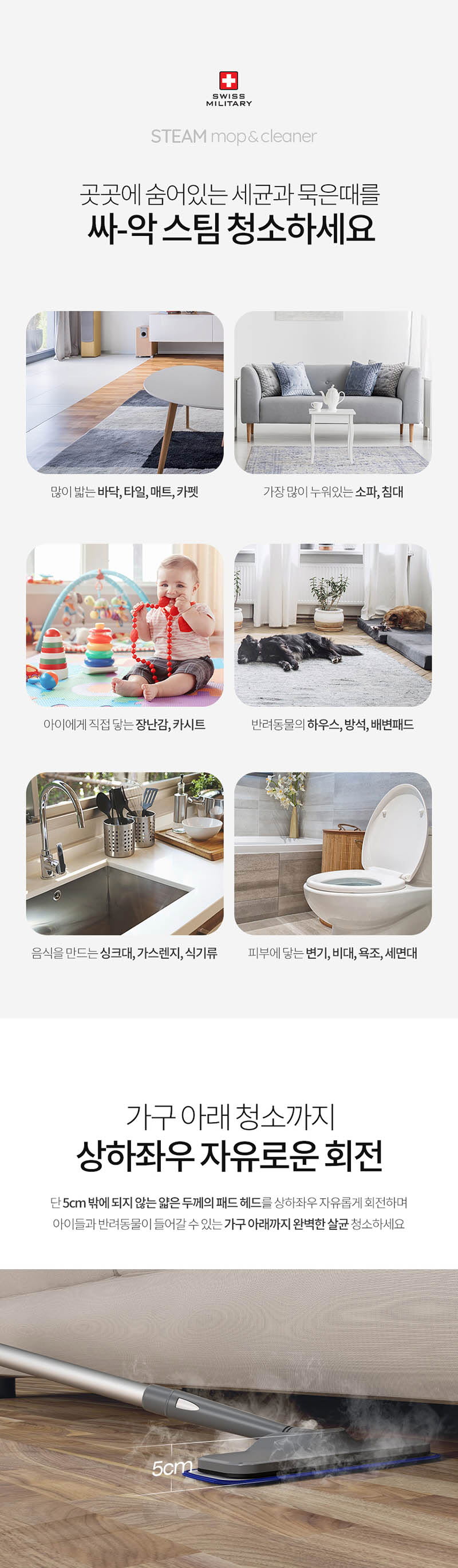 스위스밀리터리 스팀 유선청소기는 순간 고온 스팀으로