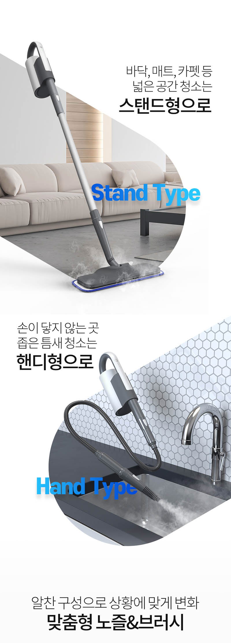 스팀으로 묵어 있는 때 제거와 살균작업을 동시에!