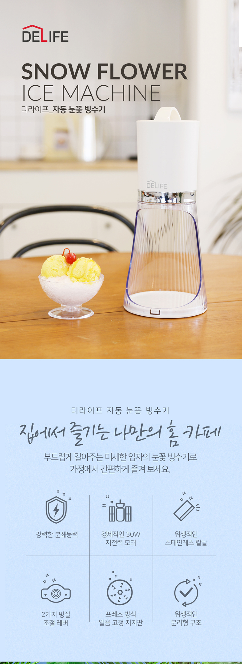 디라이프 자동 눈꽃 빙수기는 집에서도 눈꽃빙수기를 만들어