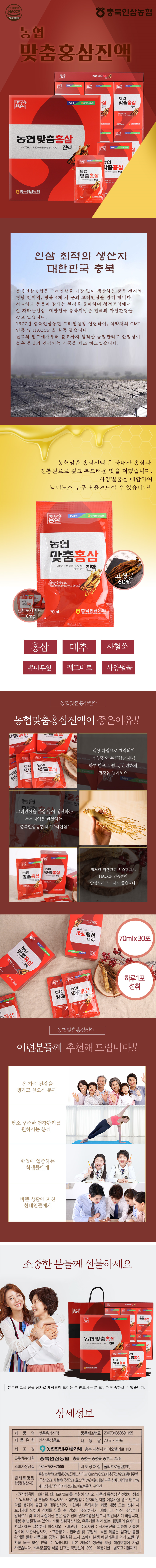 딱 좋은 충북인삼농협 맞춤홍삼진액입니다. 70ml 30포로