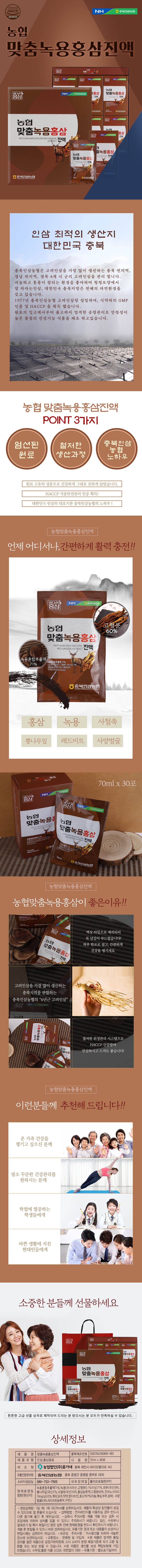 충북인삼농협 맞춤녹용홍삼 진액 70ml 30포 주문 및 문의