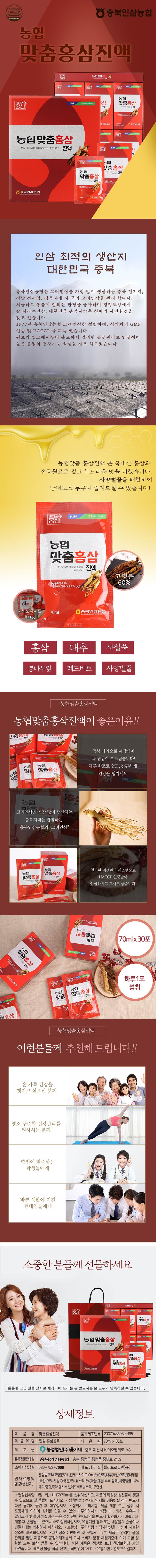 충북인삼농협 맞춤홍삼진액 70ml 30포 주문 및 문의