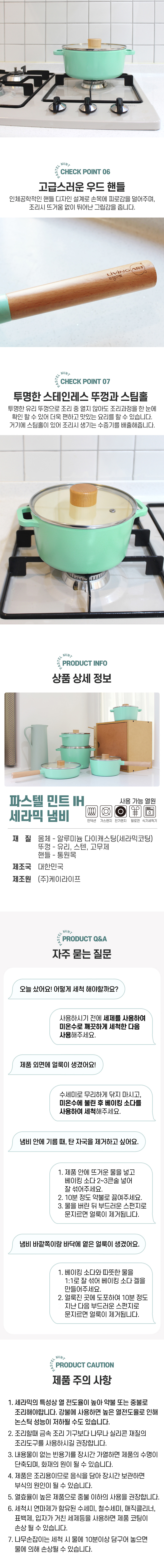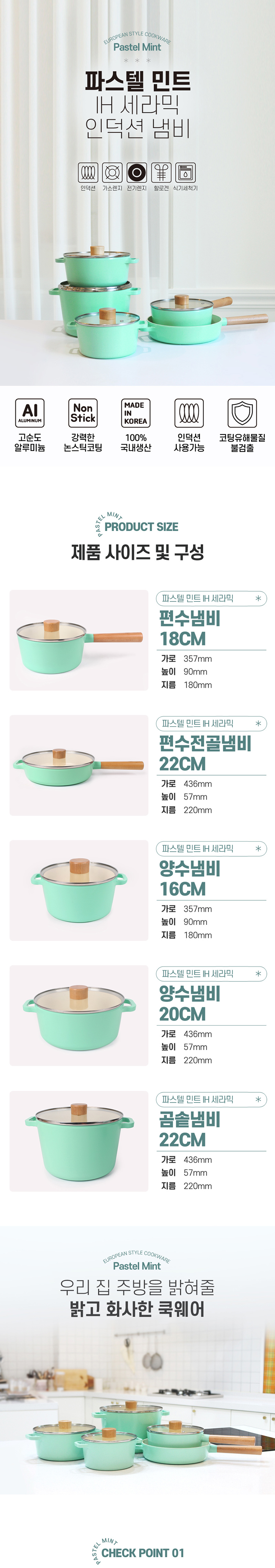 파스텔 민트 IH 세라믹 인덕션 냄비 5종세트 주문 및 문의