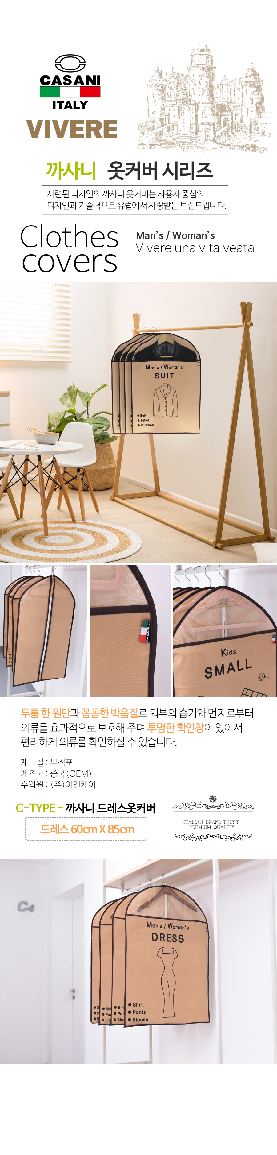 다양한 옷에도 활용하기 좋은 까사니 옷커버 C-TYPE (드레스)