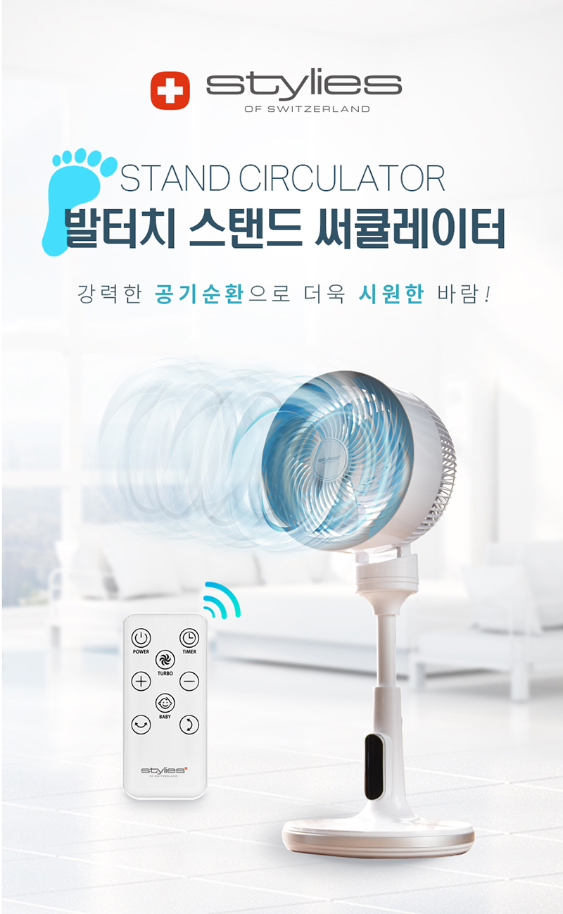 스타일리스 발터치 스탠드 써큘레이터입니다. 시원하면서도