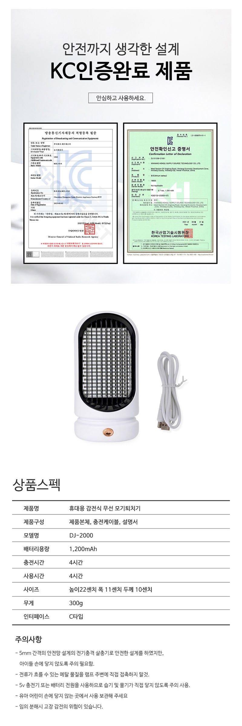 휴대용으로 활용하기 좋은 무선 모기퇴치기면서도 감전식으로