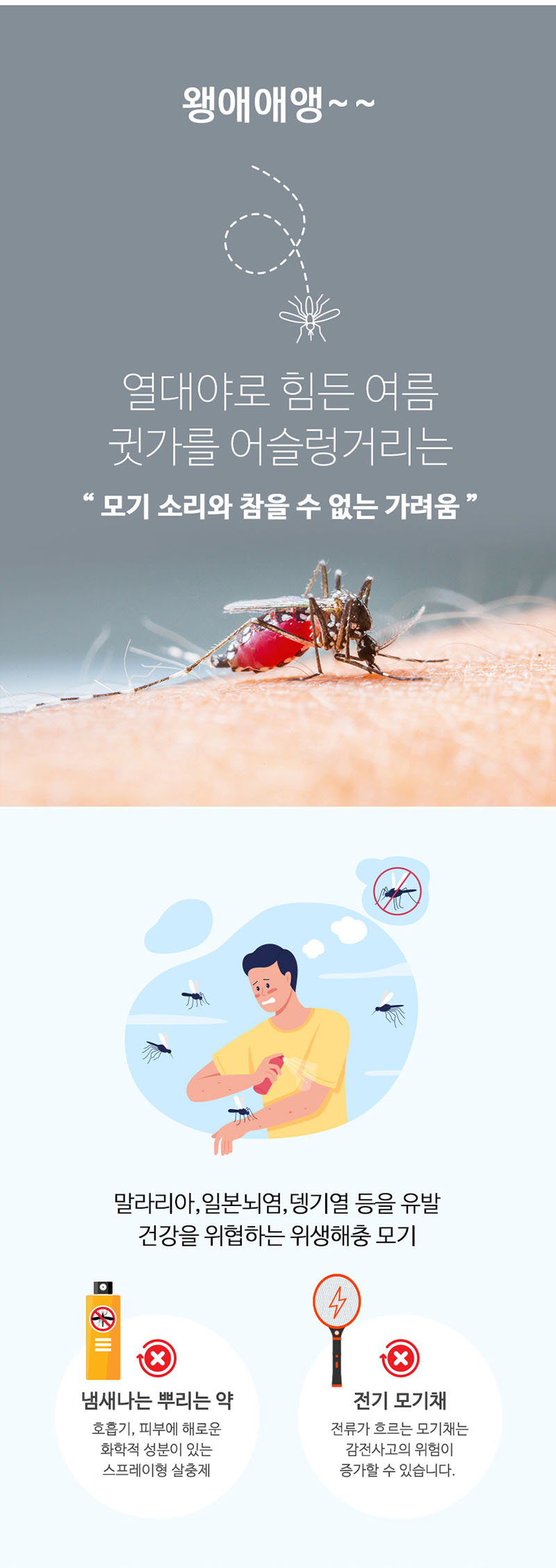 깔끔하게 모기를 잡아주기 때문에 약을 뿌릴 필요도 없고