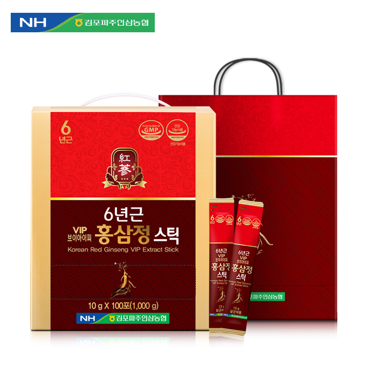 건강기능식품으로 더욱 매력적인 김포파주인삼농협 6년근 VIP 홍삼정스틱 100포 제품은 가성비 좋은 제품으로 장기간 넉넉하게 드실 수 있는 100포로 구성되어 있어서 좋습니다. 스틱형 홍삼이라 섭취도 깔끔하게 가능하죠.