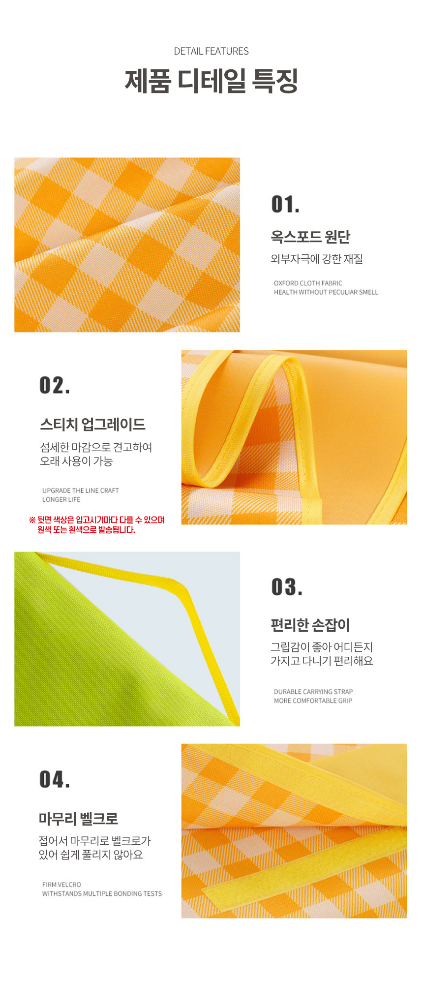 접이식으로 컴팩트하게 보관 및 휴대가 가능한 매력적인 돗자리로 방수가 되는 매트이기 때문에 세척도 편하면서 위생적으로 활용할 수 있습니다. 귀엽고 깜찍한 디자인으로 기분까지 좋아지는 돗자리죠~