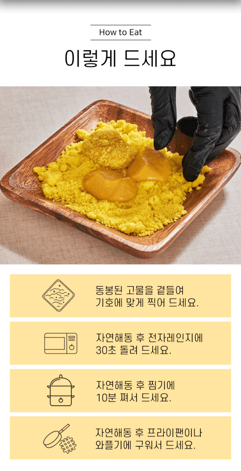 요새는 떡도 집에서 편하게 배송받아서 먹고 싶은만큼 먹을 수 있어서 상당히 편리해진거 같습니다. 냉동떡은 해동하면 기존에 바로 한것과 같은 느낌으로 먹을 수 있기 때문에 냉동떡 문화가 많이 발달해 있는데 떡집에서 바로 해먹는 떡이 가장 맛있기는 하지만 보관편의성, 그리고 소량 섭취등 장점이 많기 때문에 냉동떡을 선호하시는 분들이 많아지고 있는거 같습니다. 평소에 떡을 좋아하신다면 몰캉 단호박인절미를 만나보세요.