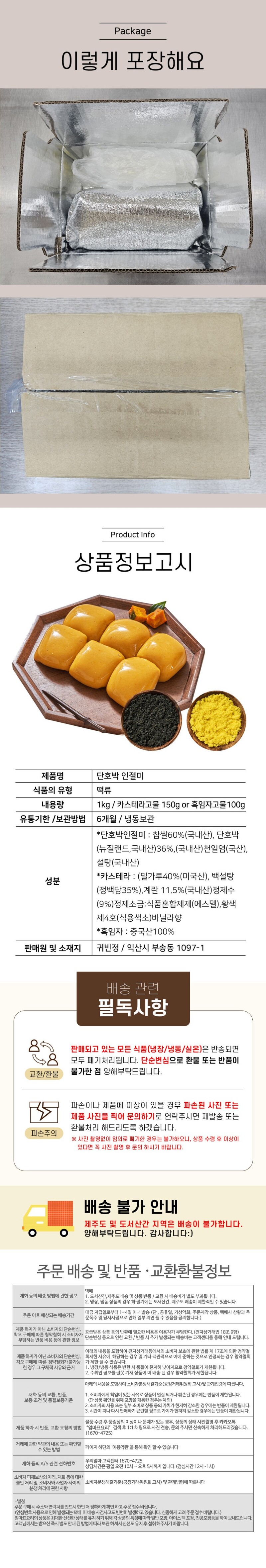 30년전통 몰캉 단호박인절미 1kg 주문 및 문의