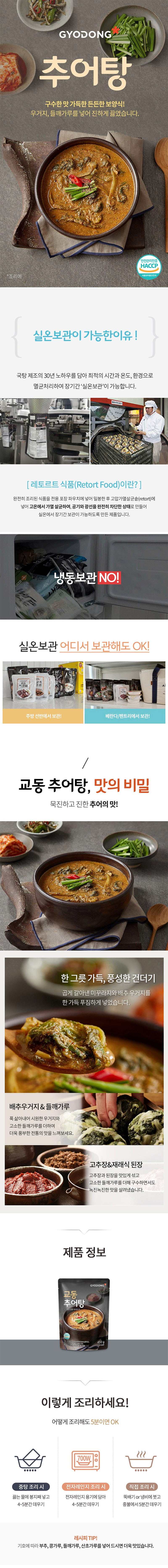 맛있기도 하면서 몸보신도 되는 교동 추어탕, 실온 보관 제품이기 때문에 냉장고 자리를 많이 차지하지 않아서 좋은 제품입니다. 이것저것 좋은 재료들이 많이 들어간 알찬 추어탕이죠.
