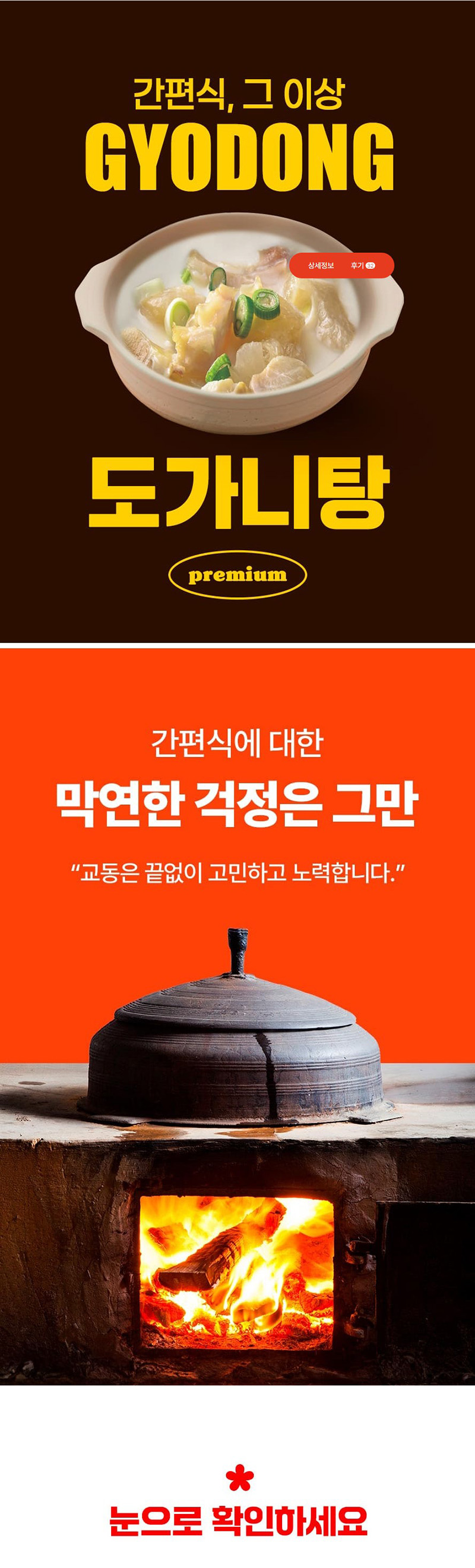 몸보신이 필요할때, 입맛이 없을때 심플하게 드실 수 있는 교동 프리미엄 도가니탕 제품을 만나보세요. 남녀노소 누구나 쉽고 간편하게 드실 수 있으면서도 맵지 않고 맛있기 때문에 아이들 밥을 챙겨줄때도 아주 좋은 도가니탕입니다. 실온 보관으로 보관 편의성도 높고 맛도 좋은 도가니탕을 원하셨던 분들에게 딱 좋습니다.