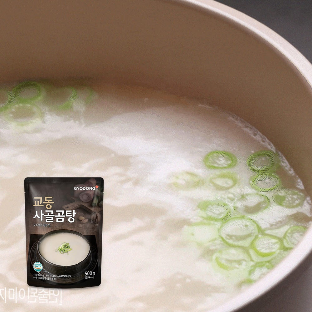 교동 사골곰탕 500g 9팩 제품으로 넉넉하게 쟁여두세요 ㅎㅎ 곰탕이 필요한 요리가 생각보다 많기 때문에 9팩을 구매하셔도 금방 사용하게 되실거 같습니다. 교동이 만든 맛있는 사골곰탕~