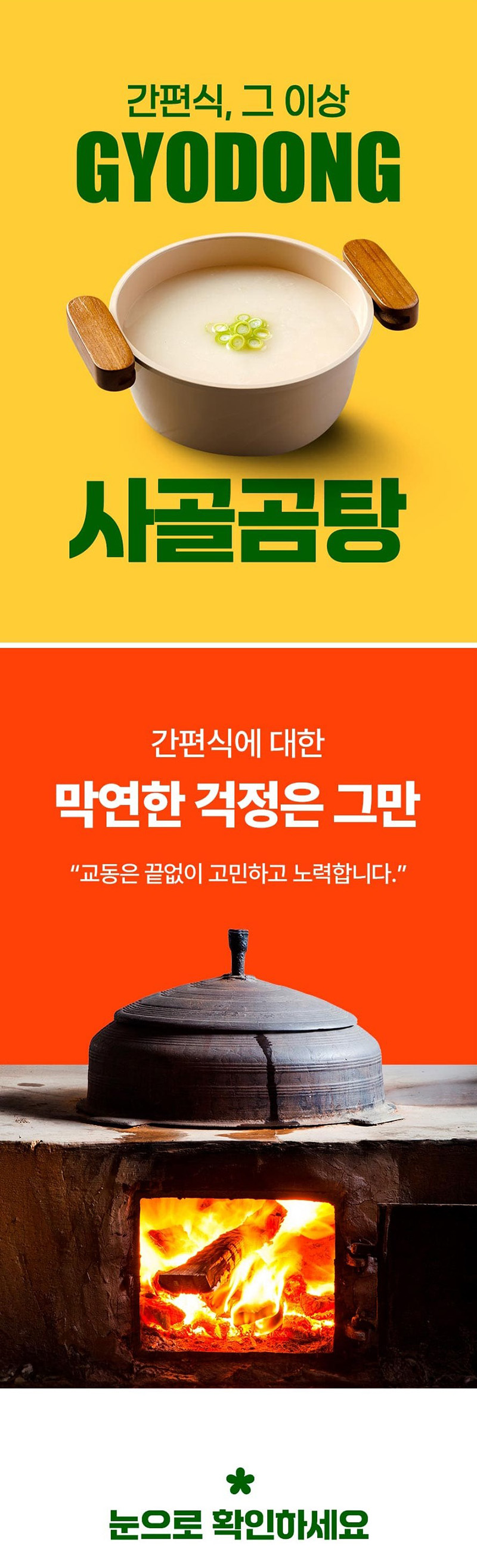 한국사람들이라면 곰탕을 좋아하지 않을 수 없죠~ 구수하면서도 진한 맛의 곰탕은 떡국이나 만두굿등을 끓일때도 활용하기 좋고 김치찌개등 다양한 요리에도 활용하기 좋으면서 영양도 풍부하게 들어가 있기 때문에 상당히 매력적인 곰탕이죠~ 매일 먹으면 질리긴 하지만 그래도 곰탕을 싫어하시는 분들은 없을거 같네요 ㅋㅋ 번거롭지 않게 드시기 좋은 교동 사골곰탕으로 맛있는 곰탕 및 요리를 만들어보세요.
