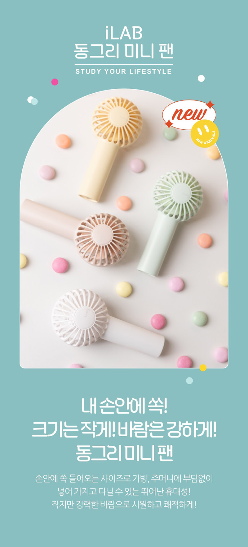 디자인도 이쁘면서 작은 사이즈로 휴대하기도 좋고 꺼내서 활용할때 자신있게 활용하기도 좋은 아이템으로 손풍기 필요하신 분들에게 매력적인 휴대용 선풍기죠~ 더욱 작게 그러면서 시원한 선풍기!