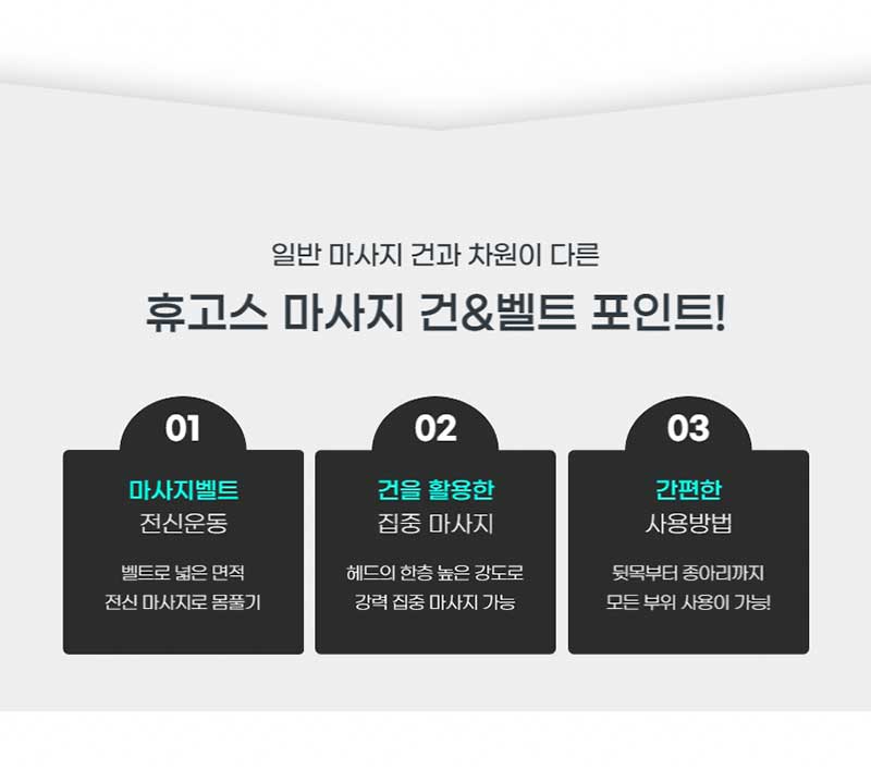 전신 어디나 활용할 수 있으면서 취향대로 상황에 따라서 벨트형 마사지도 가능하고 건타입 마사지도 가능하기 때문에 시원하고 편리하게 사용할 수 있습니다. 기분좋은 마사지기죠~