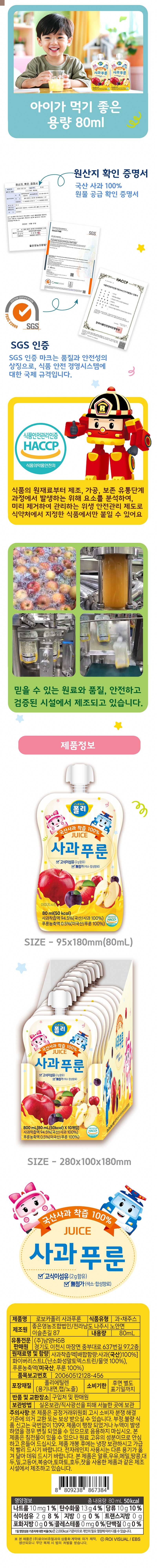 국산 사과착즙액이 들어간 로보카폴리 사과푸룬 과채주스 80ml 10개 1박스 한정 찬스 공동구매 진행합니다.^^