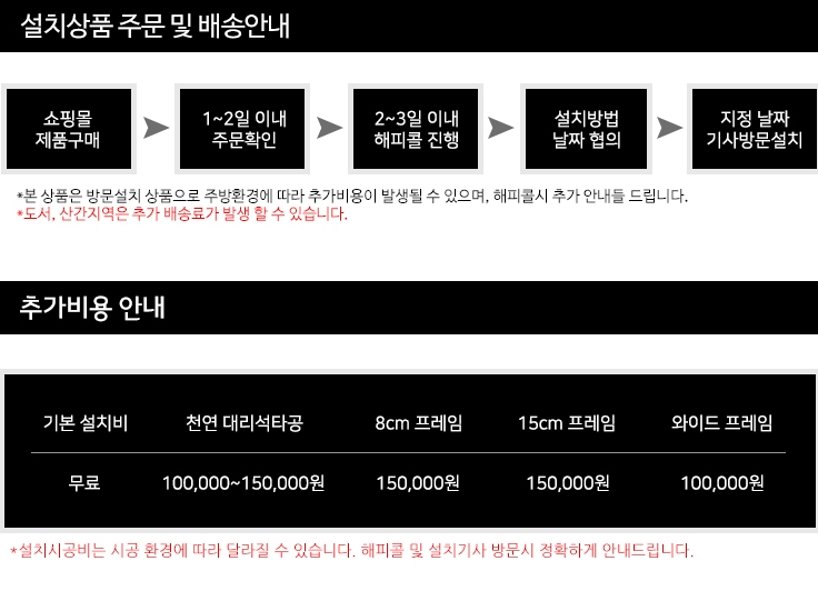 설치시에는 추가 설치비가 발생할 수 있으니 구매 후 해피콜을
