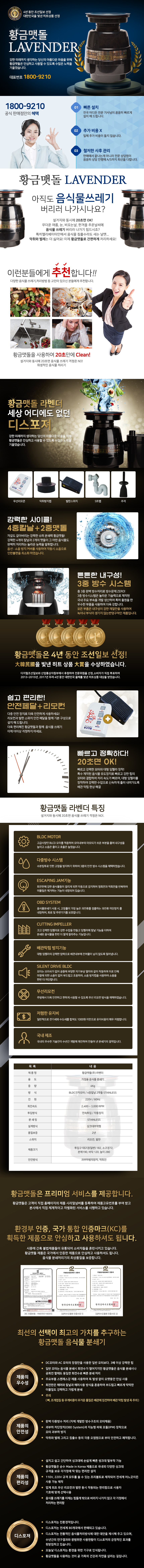 황금맷돌 라벤더 음식물 분쇄기 주문 및 문의