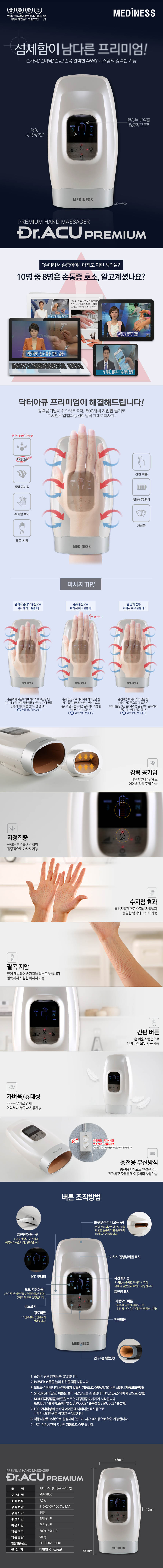 메디니스 닥터아큐 프리미엄 손마사지기 MD-9800 주문 및 문의